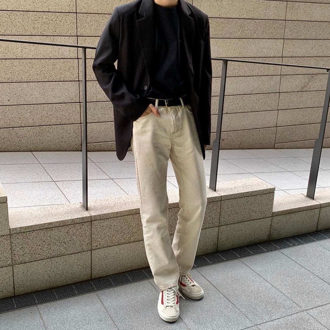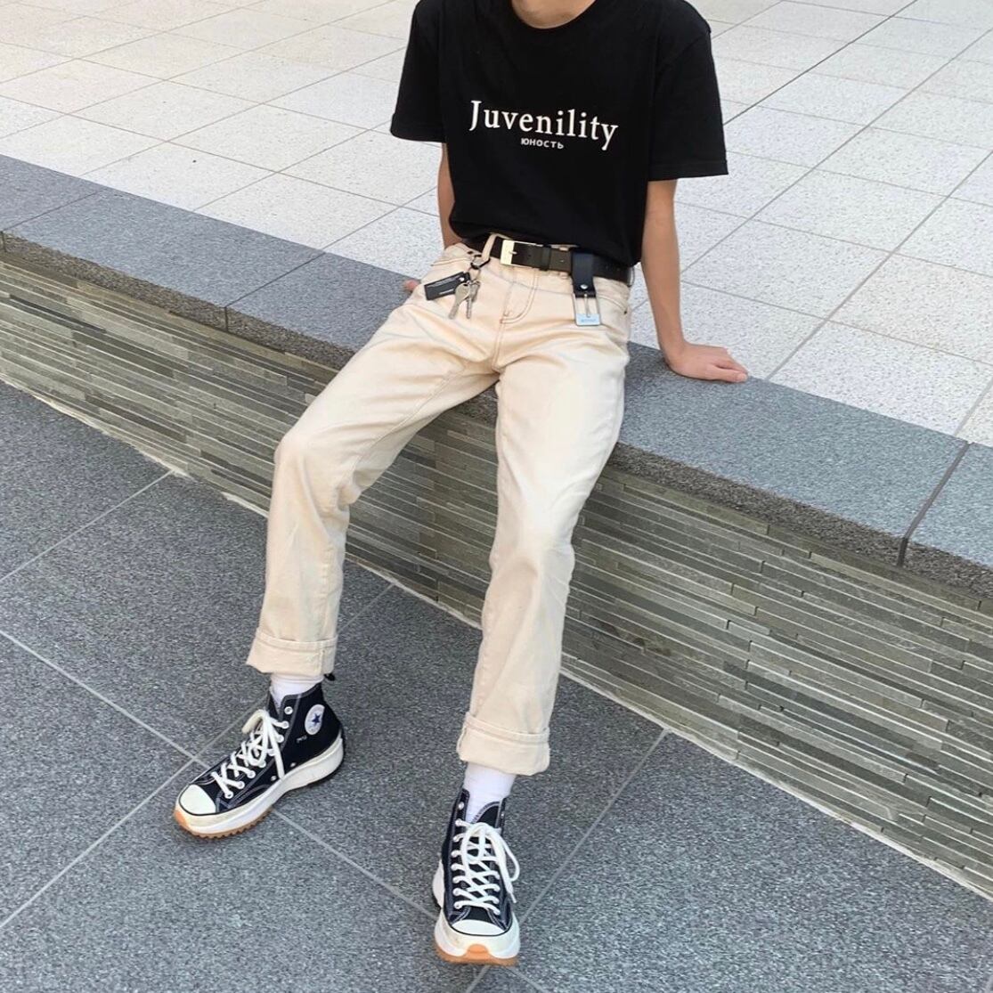 ロールアップしての着用もできる、アイボリーのパンツです。