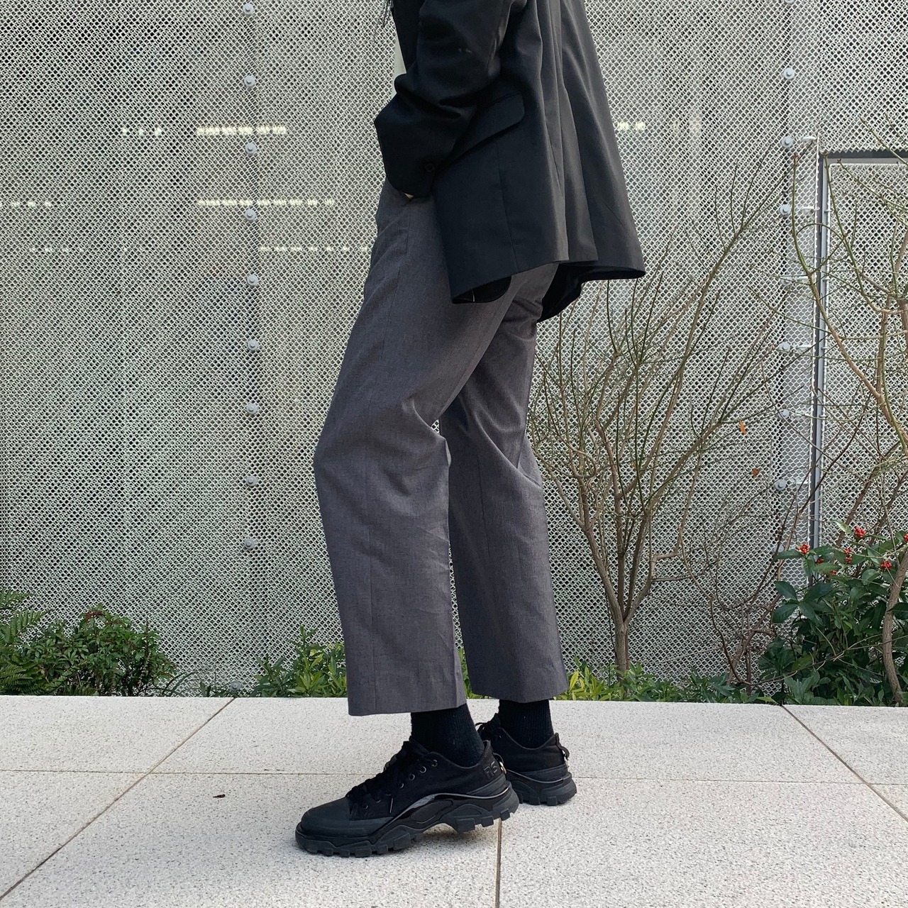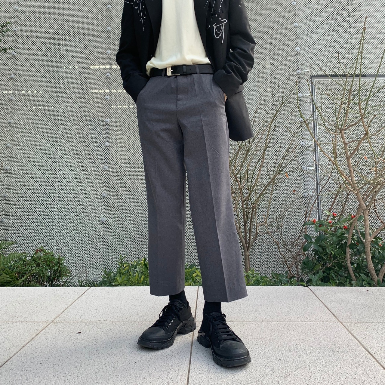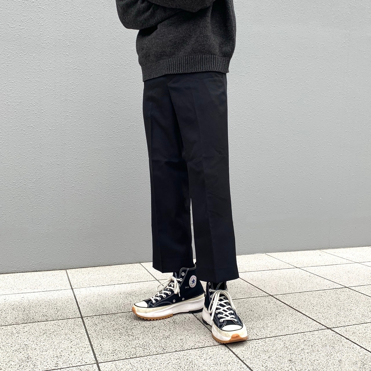 クロップド丈のスラックスです。