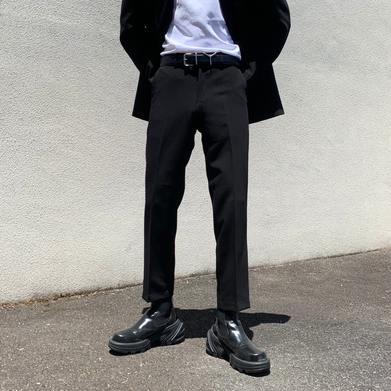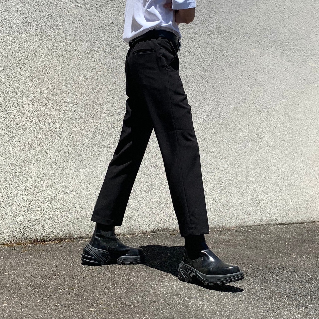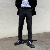 スリムで綺麗なストレートシルエットのスラックスです。