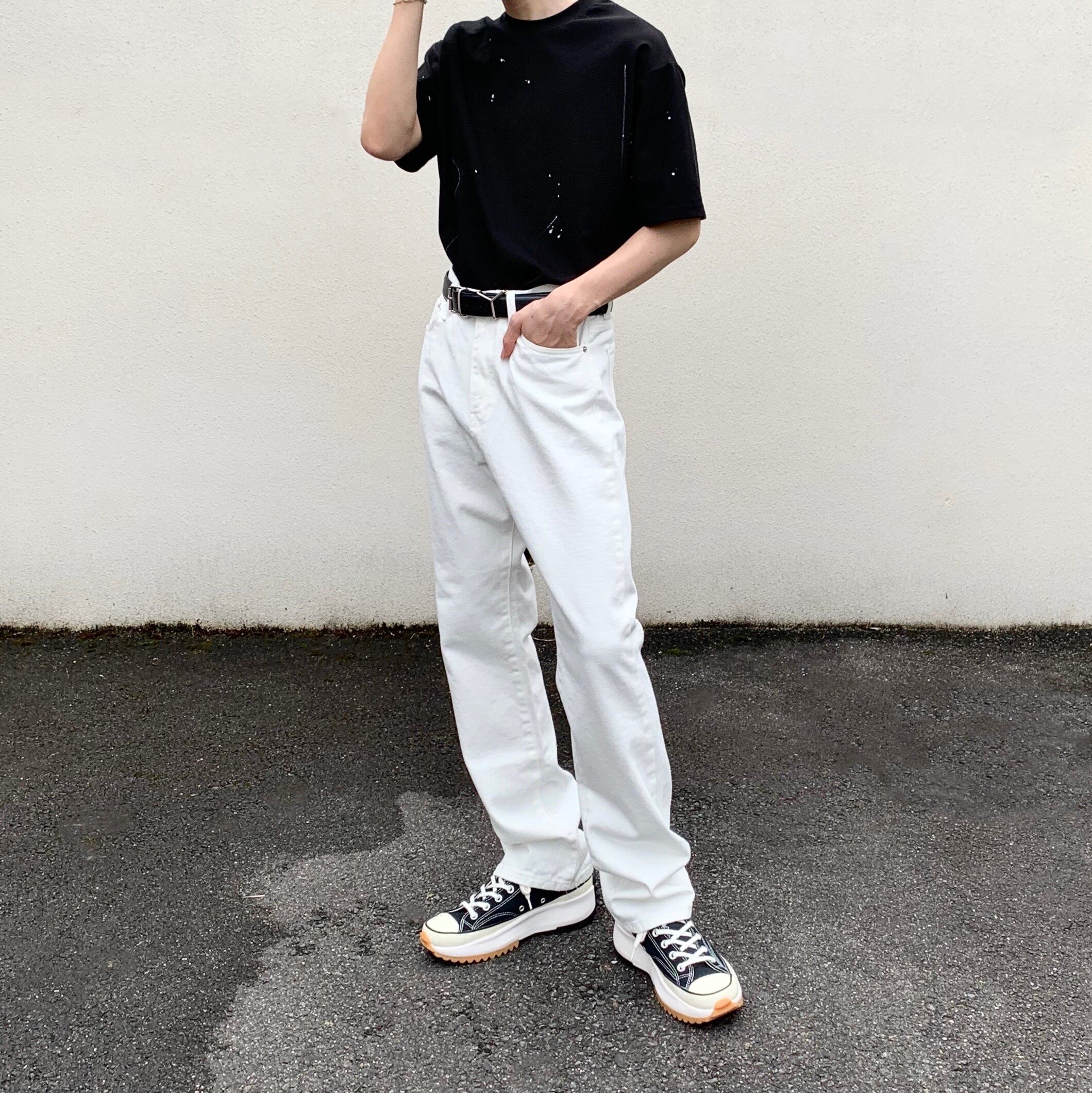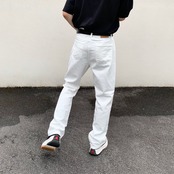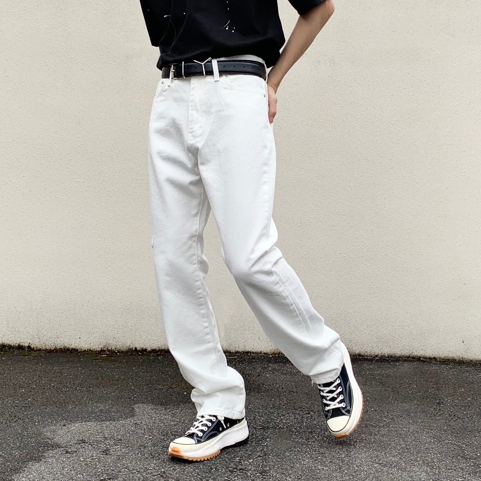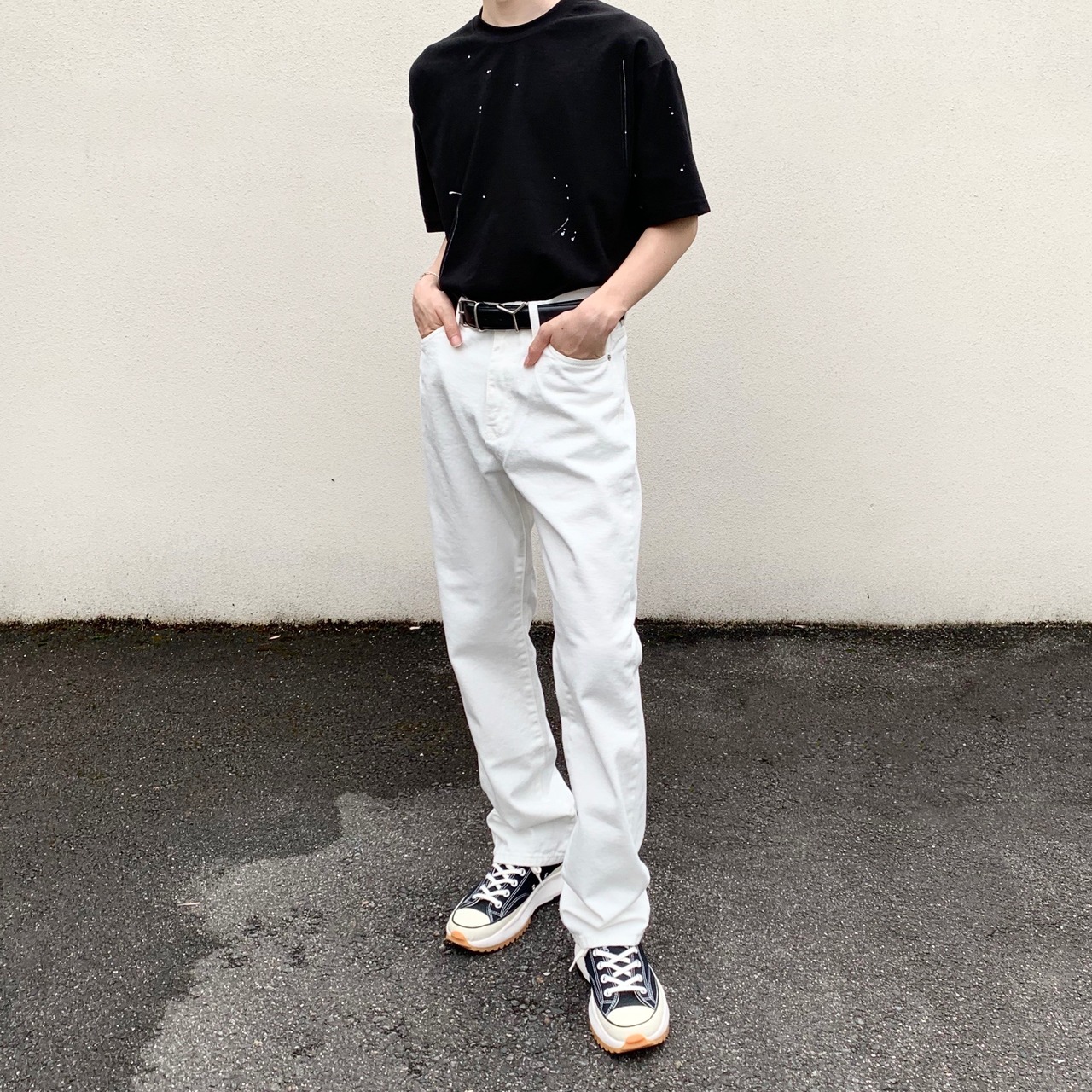 ほどよい丈の長さで、足元に裾がたまるシルエット
