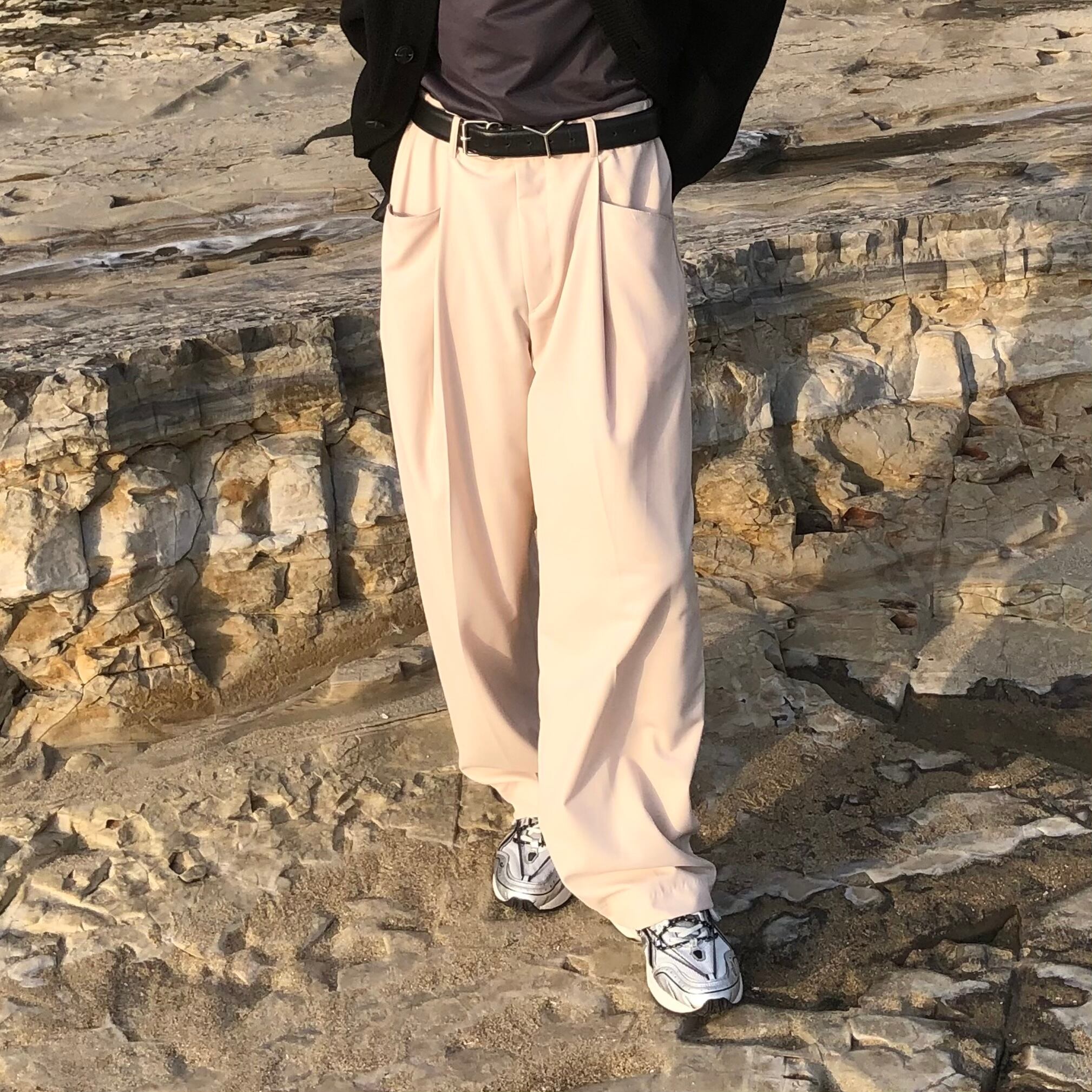 ポケットのつくりが特徴的なピンタックスラックスです。