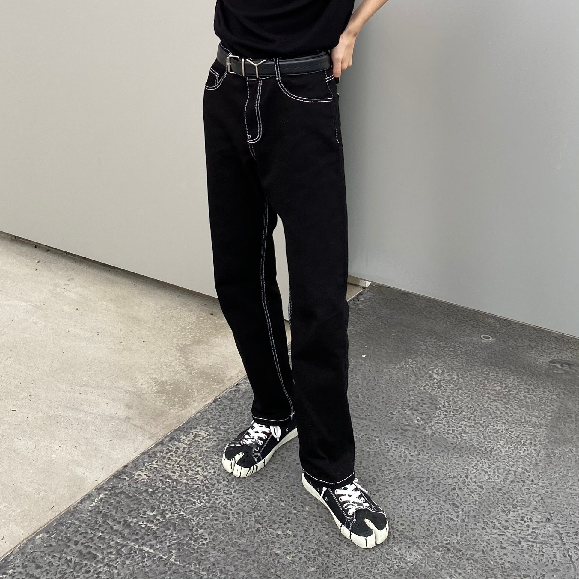 全体的にステッチ加工が加わったストレートフィットパンツ。