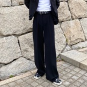 靴をカバーするようなロング丈と年中着用可能な素材感。