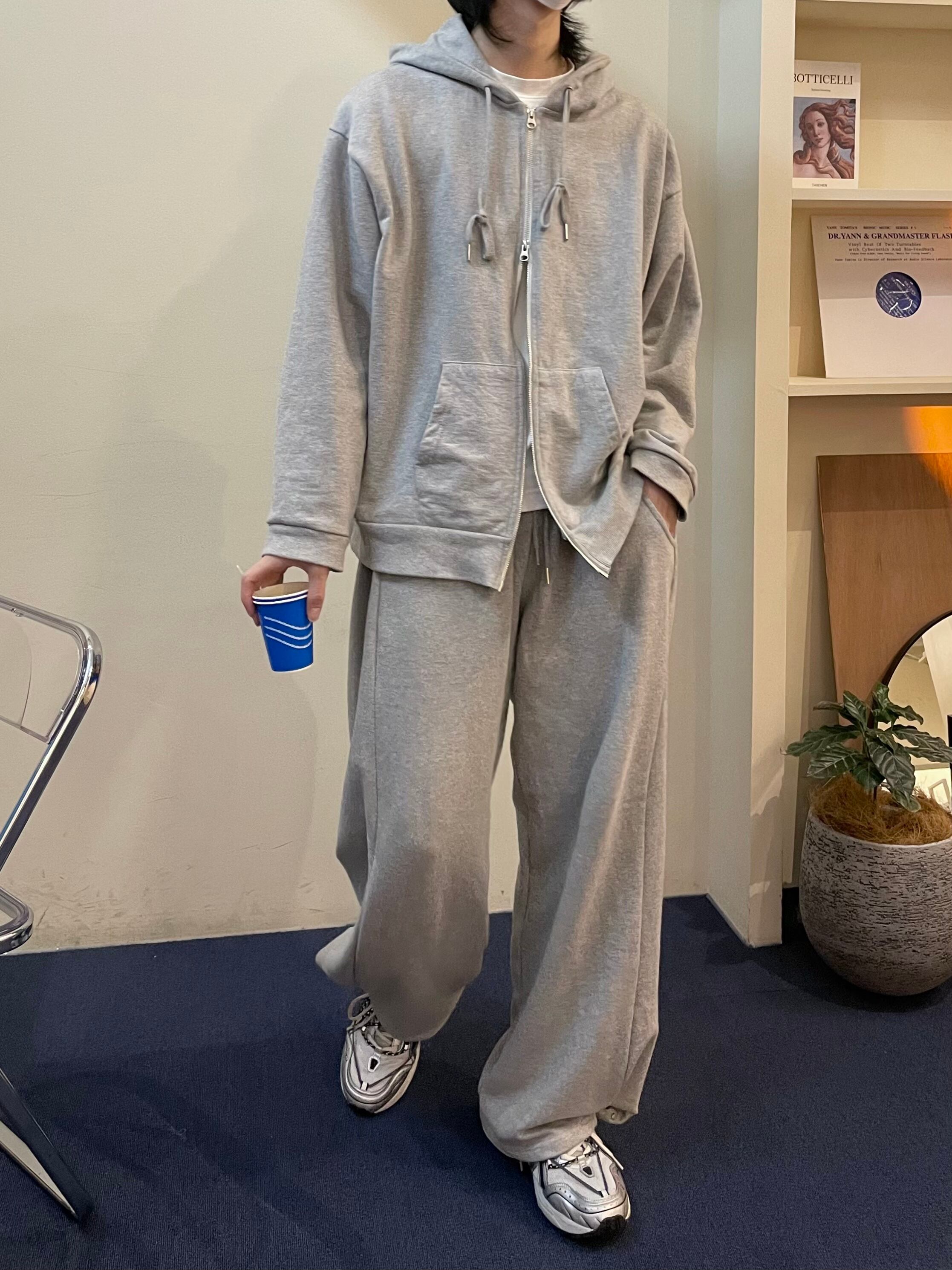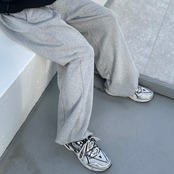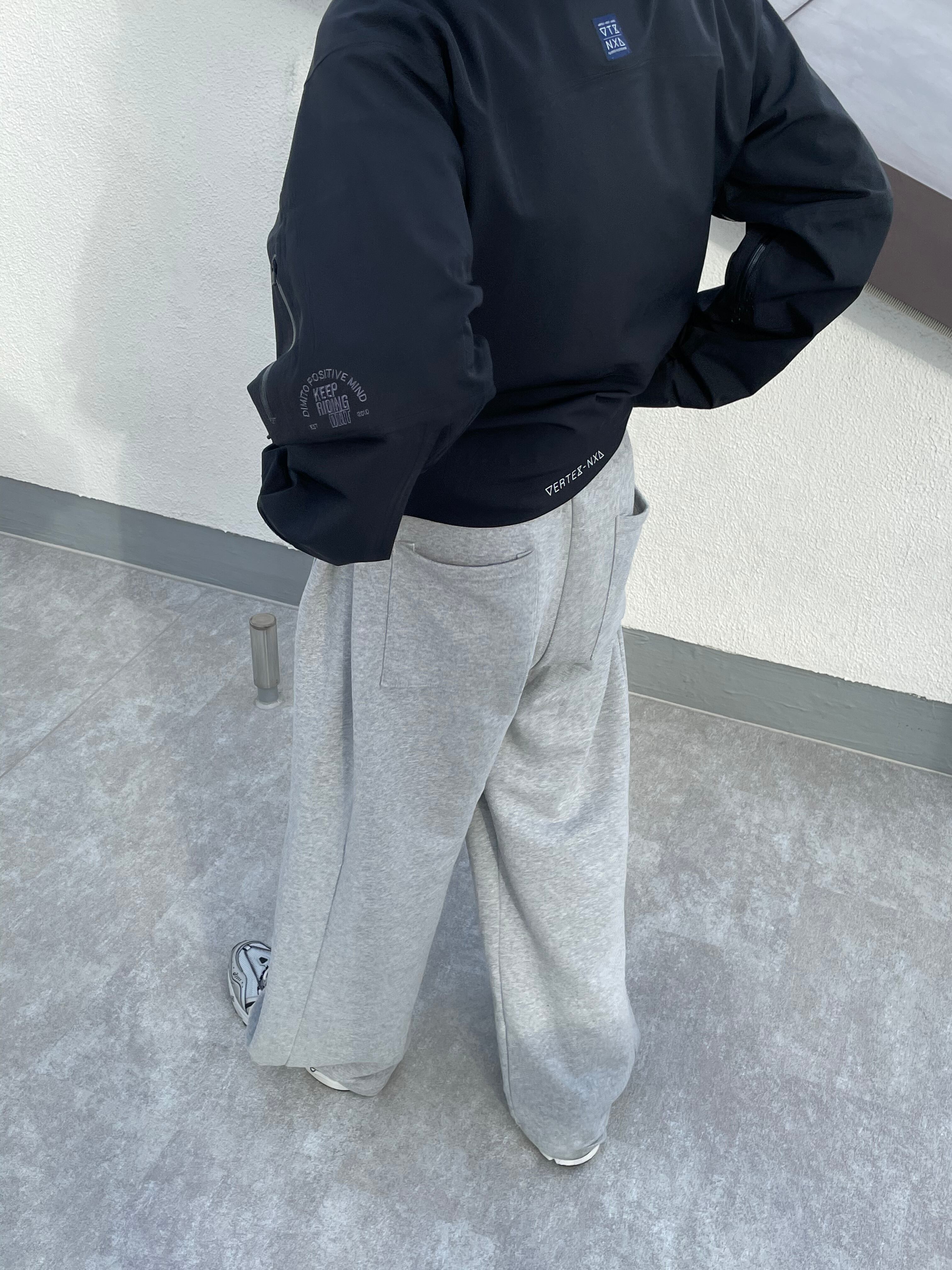 ・サイドにダブルプリーツを採用したワイドフィットスウェットパンツ