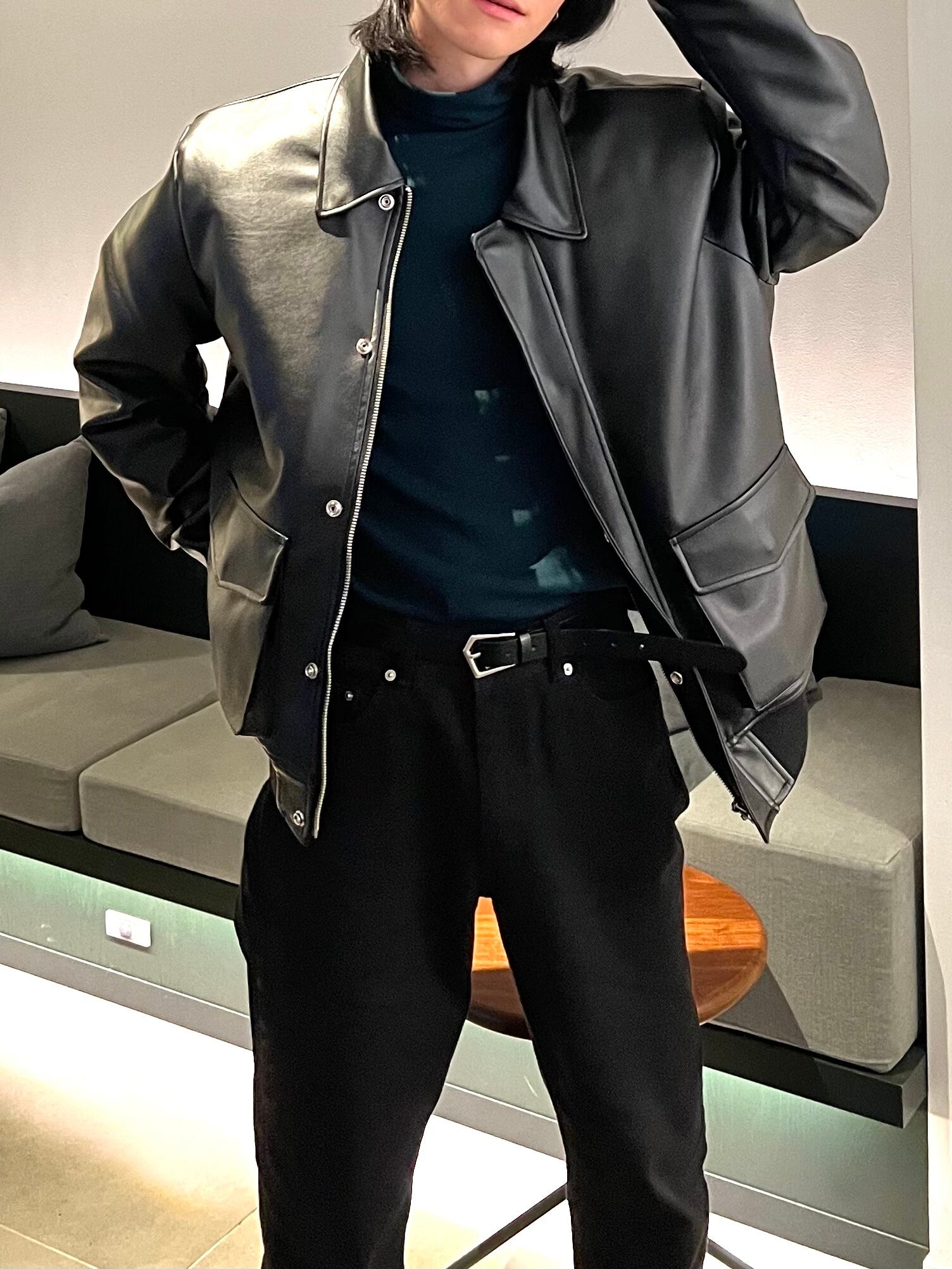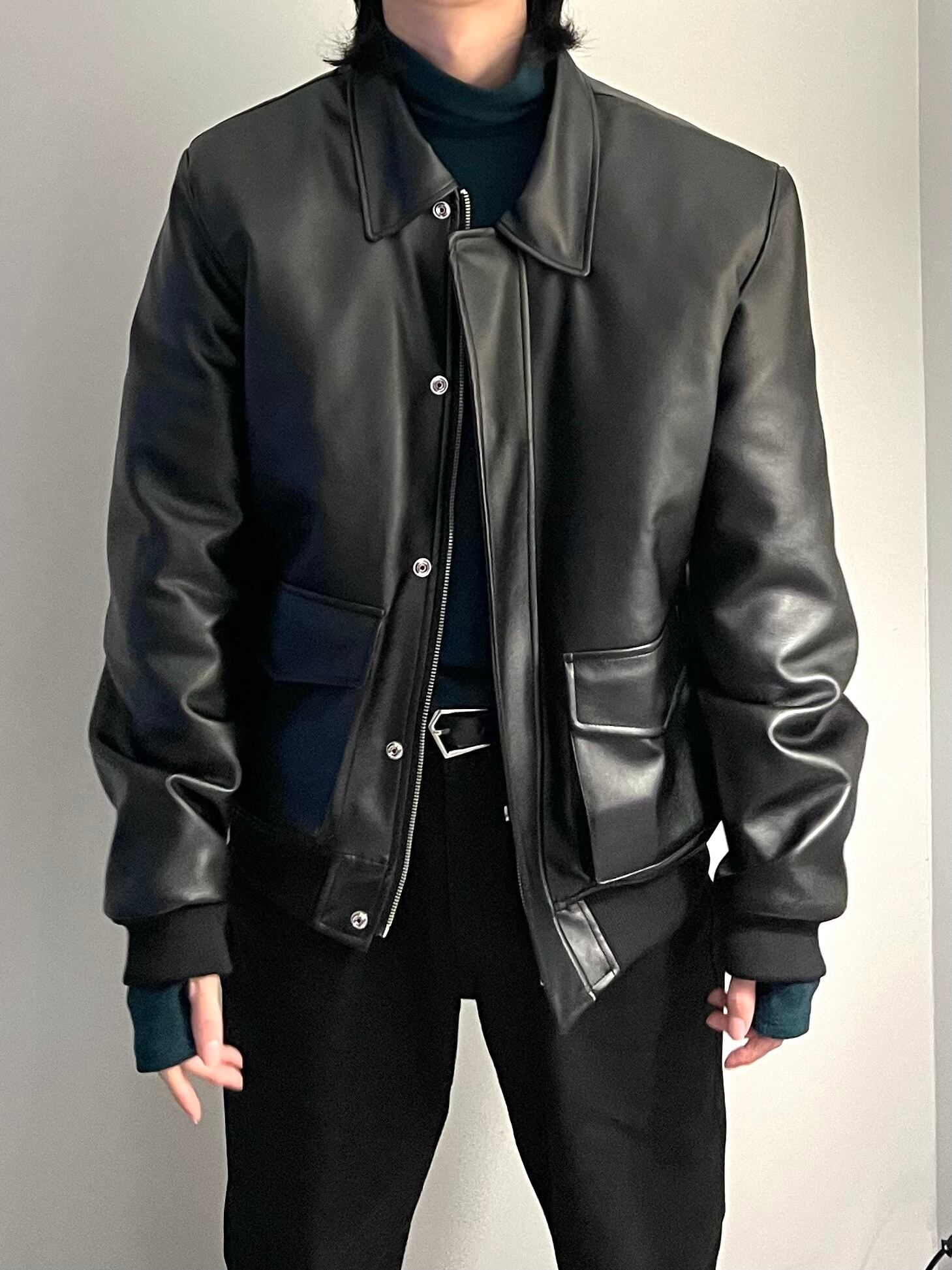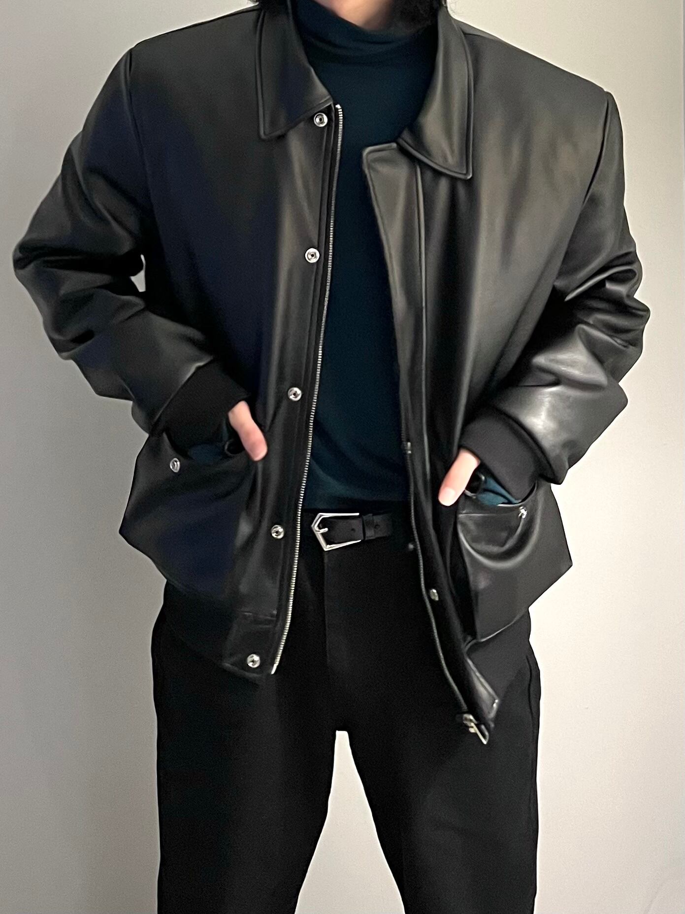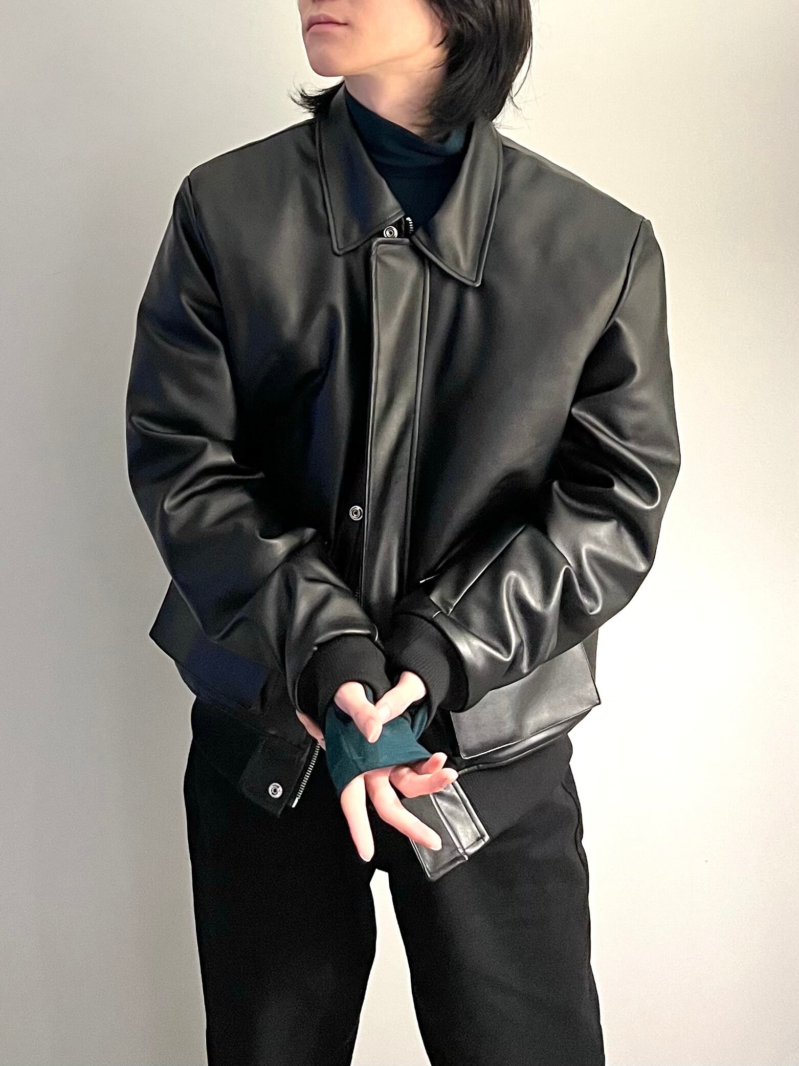 ほのかな光沢が高級感を演出しているフェイクレザーブルゾン