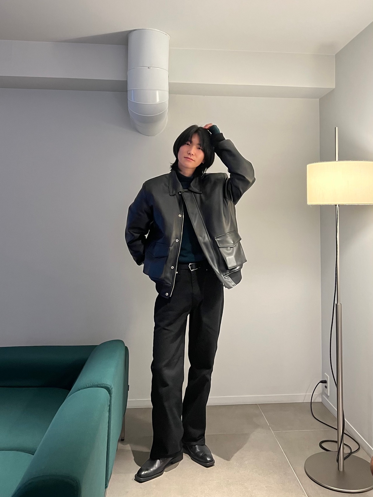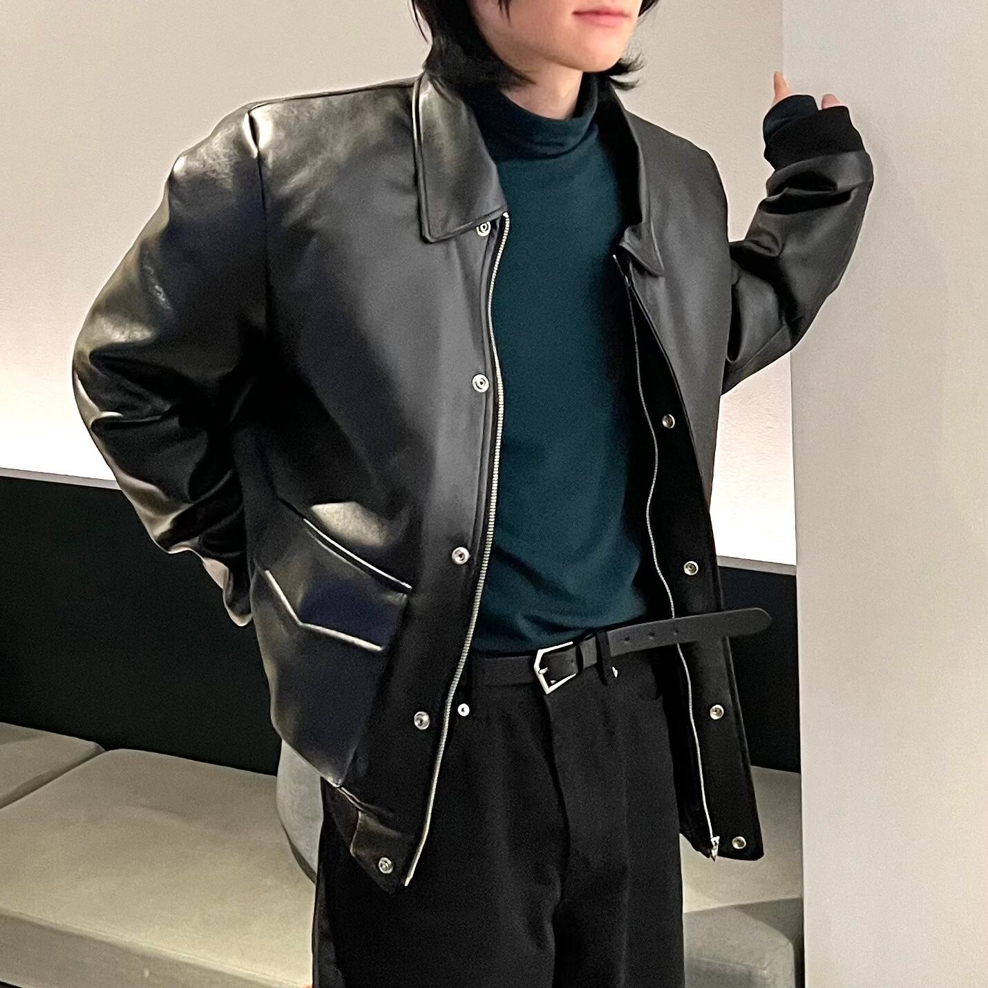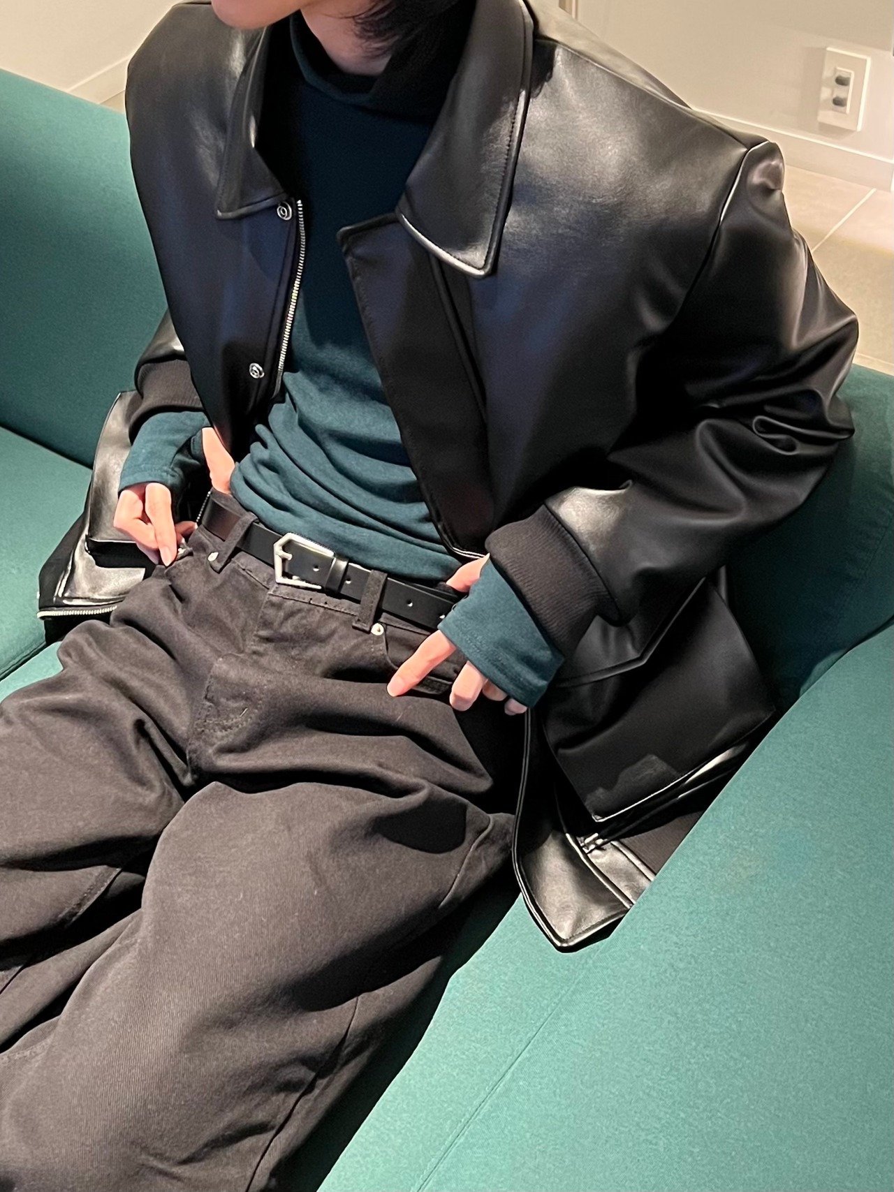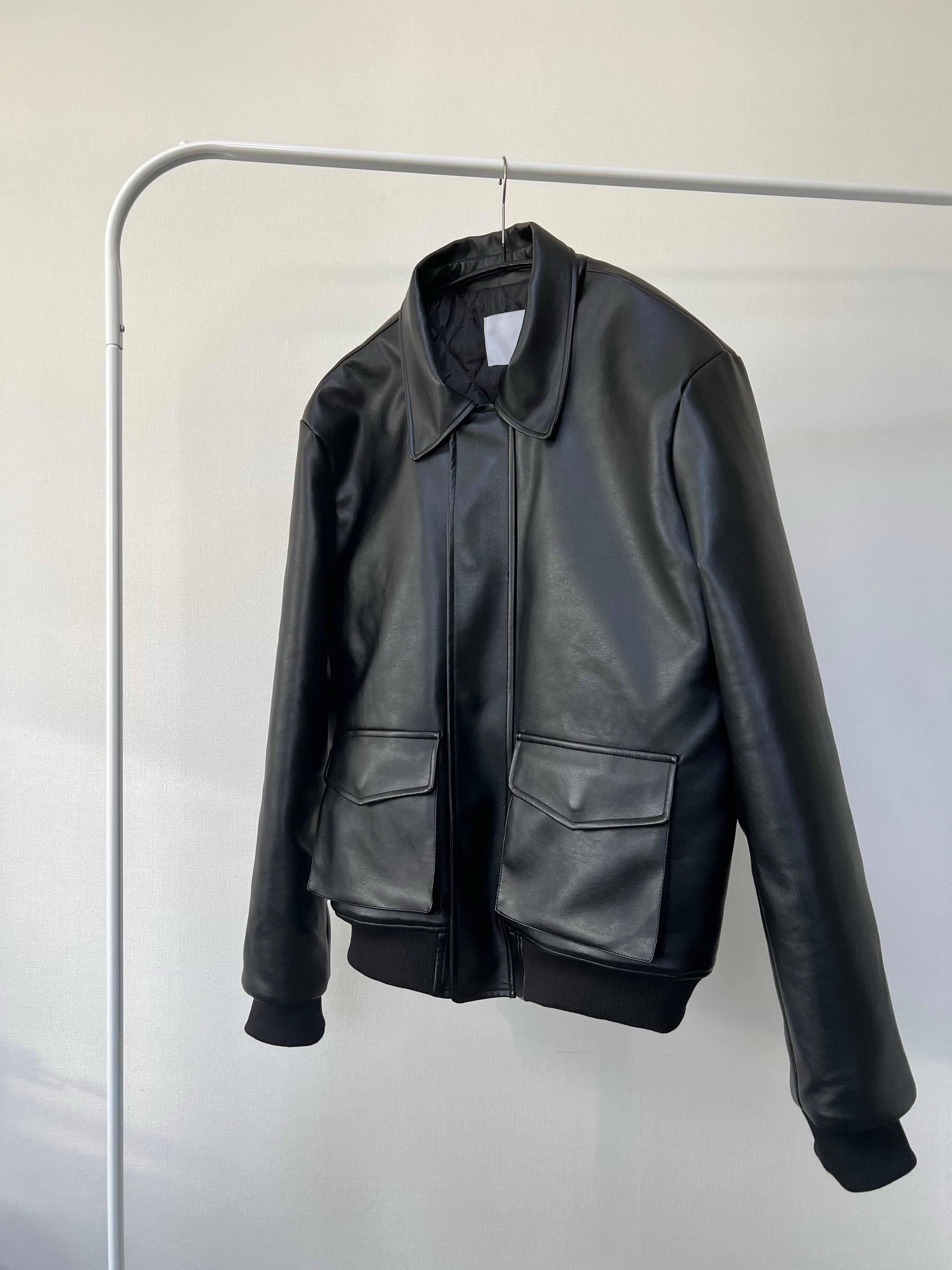ほのかな光沢が高級感を演出しているフェイクレザーブルゾン