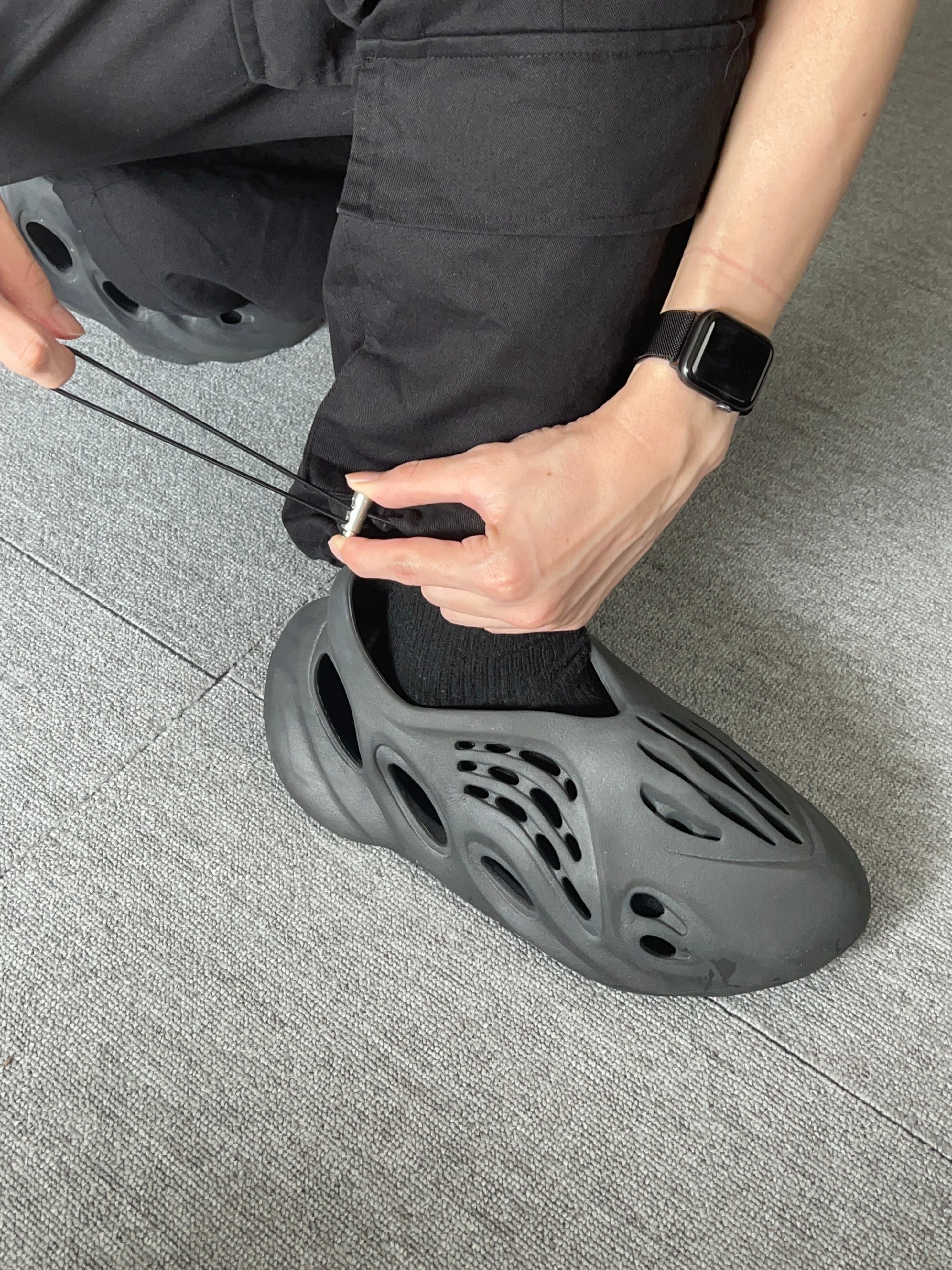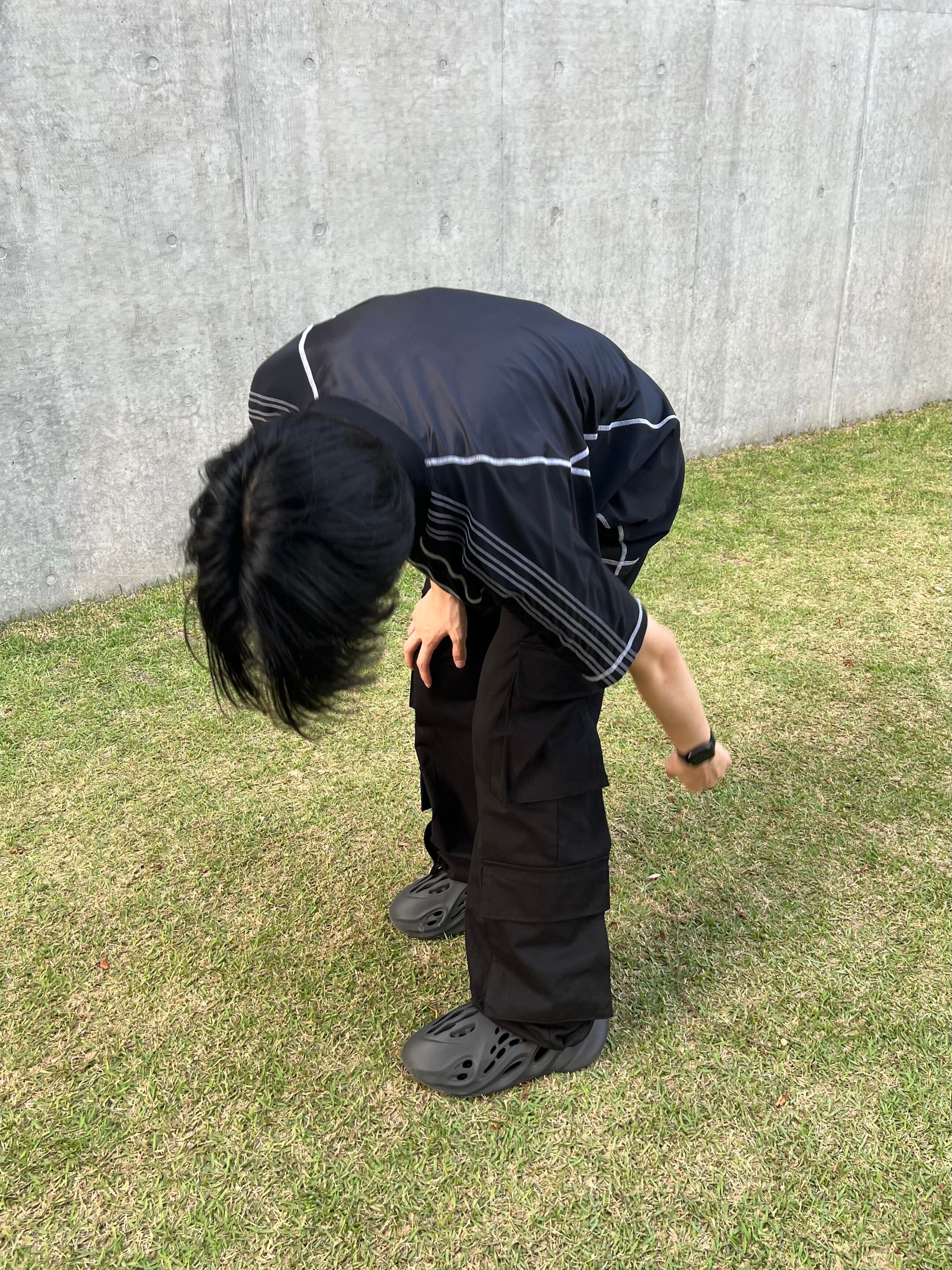 ウエストバンディングと、裾のストリングスナップで様々な身長の方に対応します