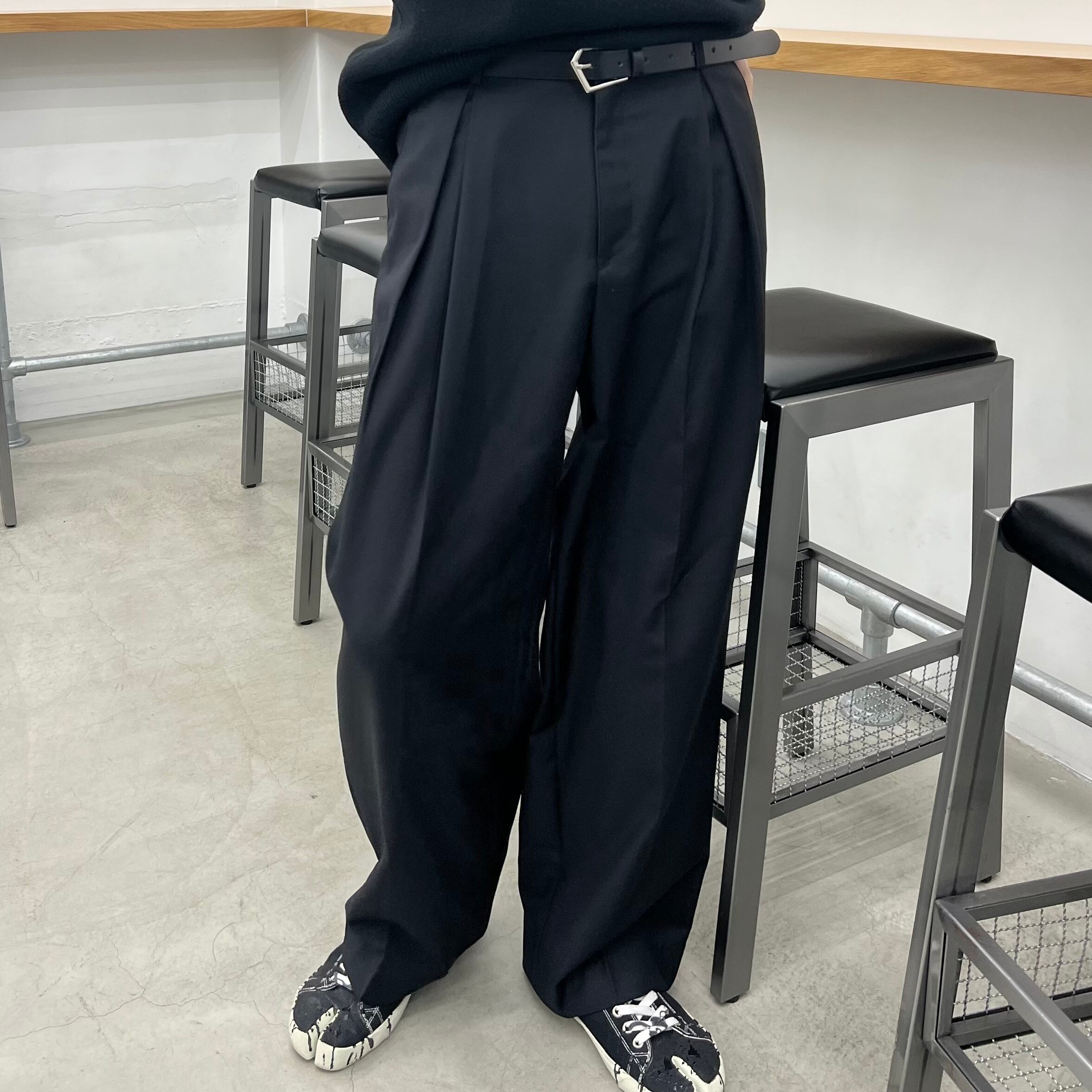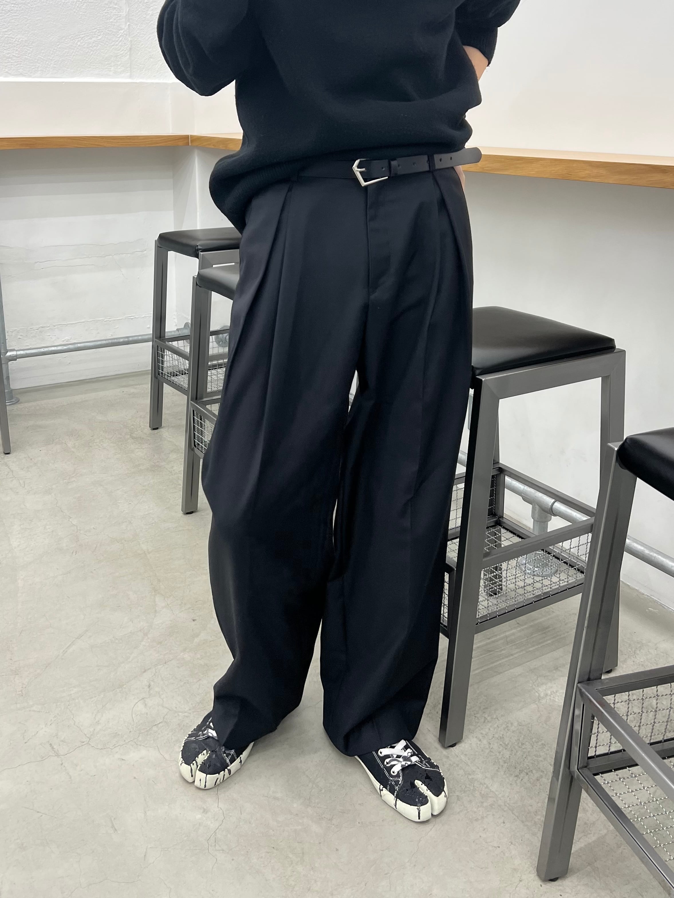 Inverted pleat wide slacks