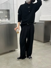 インバーテッドプリーツ入りのワイドフィットスラックス