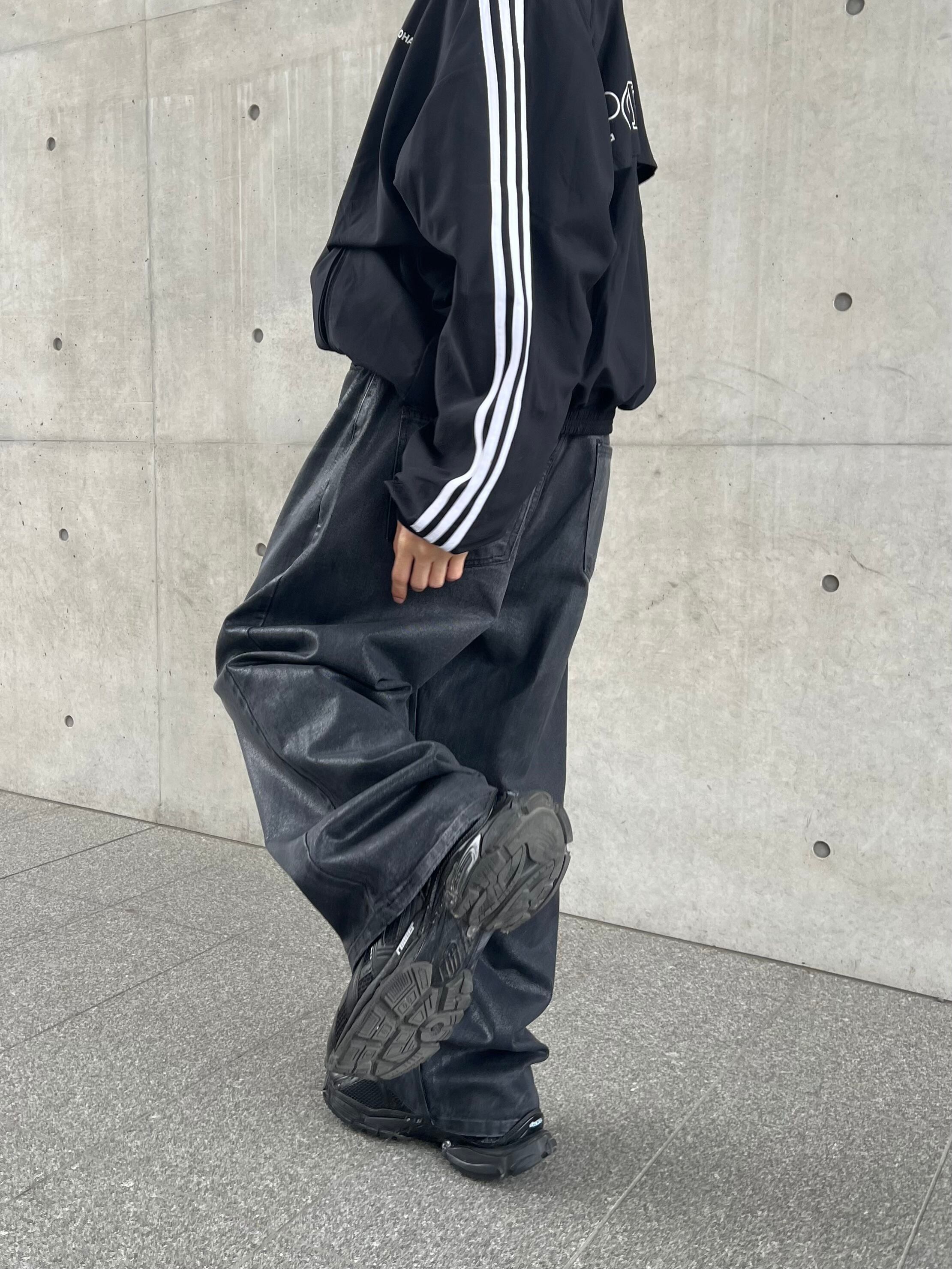 Coated black baggy jeans