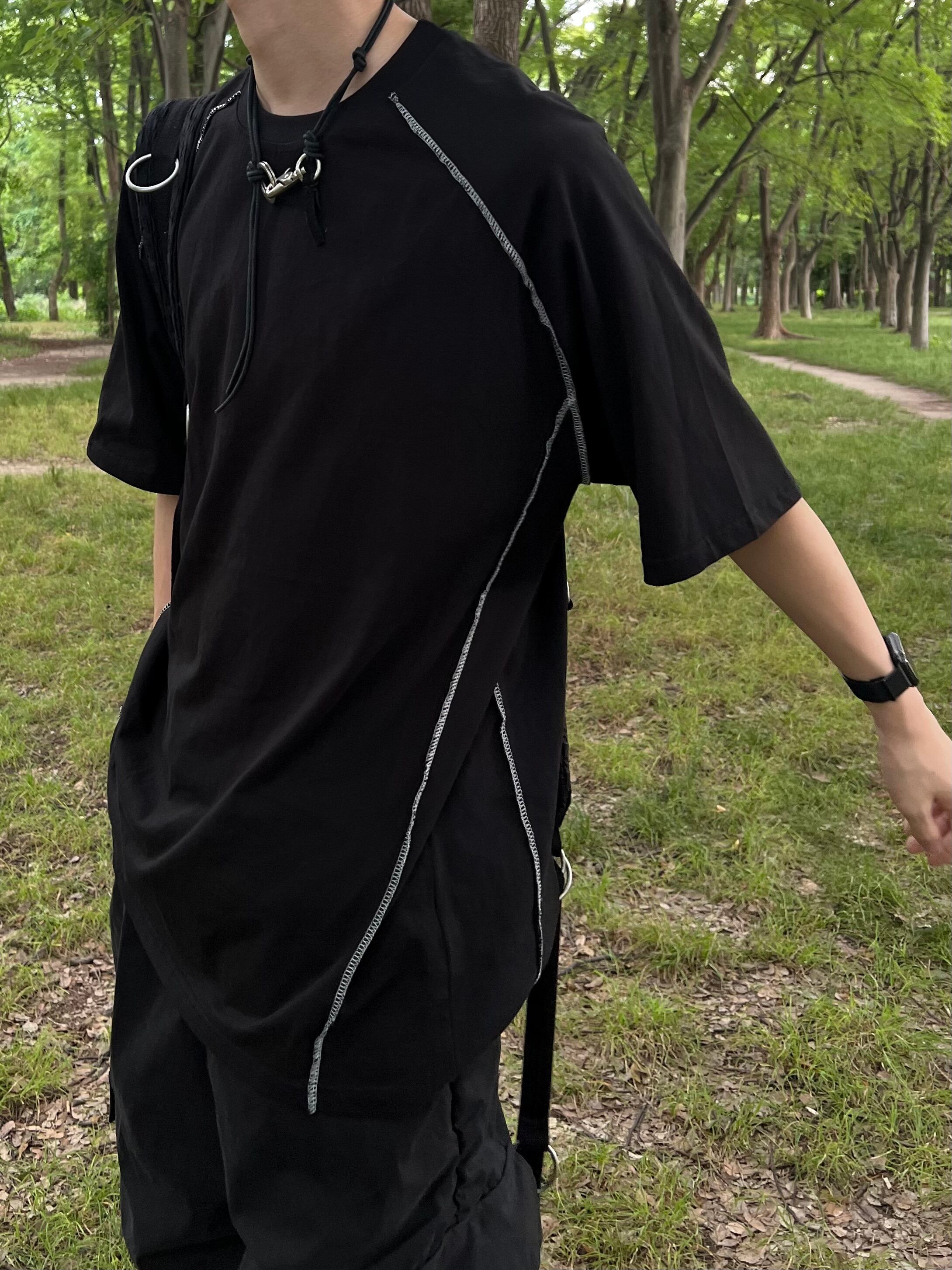 ステッチデザインを加えた半袖Tシャツ
