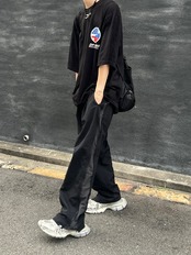 FREE: 総丈 105 / ウエスト 33-43 / 股上 32 / 裾 24